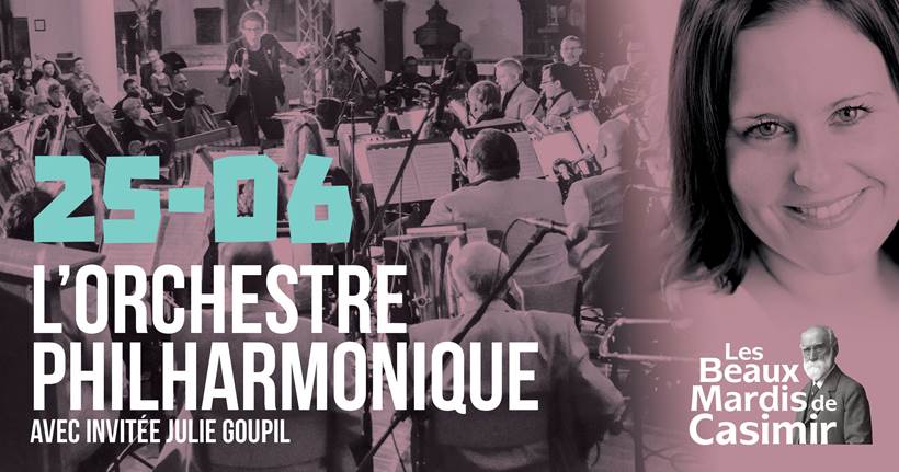 La Ville de Saint-Hyacinthe, en collaboration avec Intact Assurance, est fière de présenter le premier spectacle des Beaux Mardis de Casimir au parc Casimir-Dessaulles, le mardi 25 juin, à 19 h 30. Ce spectacle gratuit aura lieu beau temps mauvais temps et mettra en vedette l’Orchestre Philharmonique de Saint-Hyacinthe (OPSH) et Julie Goupil.