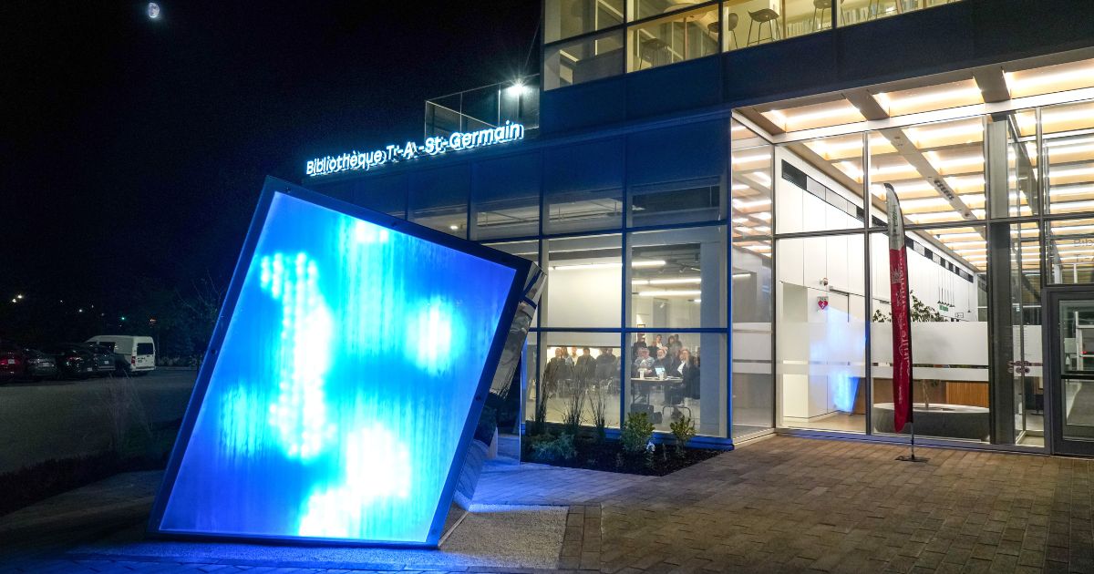 Saint-Hyacinthe, le 6 octobre 2025 – La Ville de Saint-Hyacinthe a inauguré, le 2 octobre dernier, Rivage, une œuvre d’art public installée devant la bibliothèque T.-A.-St-Germain. Imaginée par Étienne Paquette, artiste reconnu pour ses créations médiatiques et numériques depuis plus de vingt ans, cette sculpture lumineuse et immersive convie les passants à faire une pause et à se laisser emporter par la poésie des jeux de lumière.