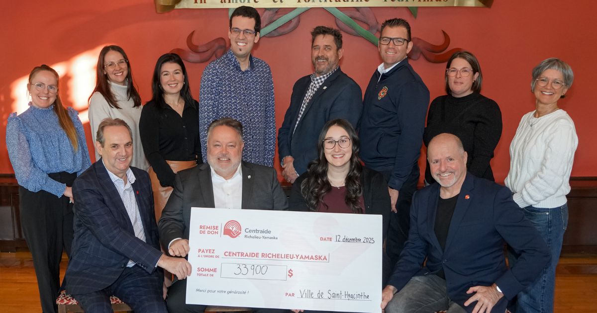 Saint-Hyacinthe, le 15 décembre 2025 – L’équipe des employés et élus de la Ville de Saint-Hyacinthe est très fière des résultats exceptionnels de sa campagne interne de philanthropie qui a permis d’amasser la somme importante de 33 900 $ grâce à la participation de 267 personnes.