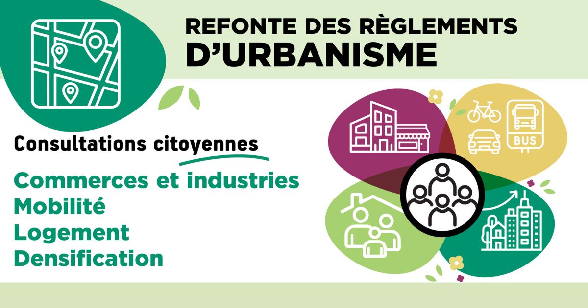 La première étape a permis d’adopter le nouveau Plan d’urbanisme, qui établit la vision d’ensemble du développement de la ville : consolidation des quartiers, protection des milieux naturels, intégration harmonieuse des usages résidentiels, commerciaux et industriels. La seconde étape, en cours, consiste à traduire cette vision en règles concrètes par l’élaboration de neuf règlements d’urbanisme.