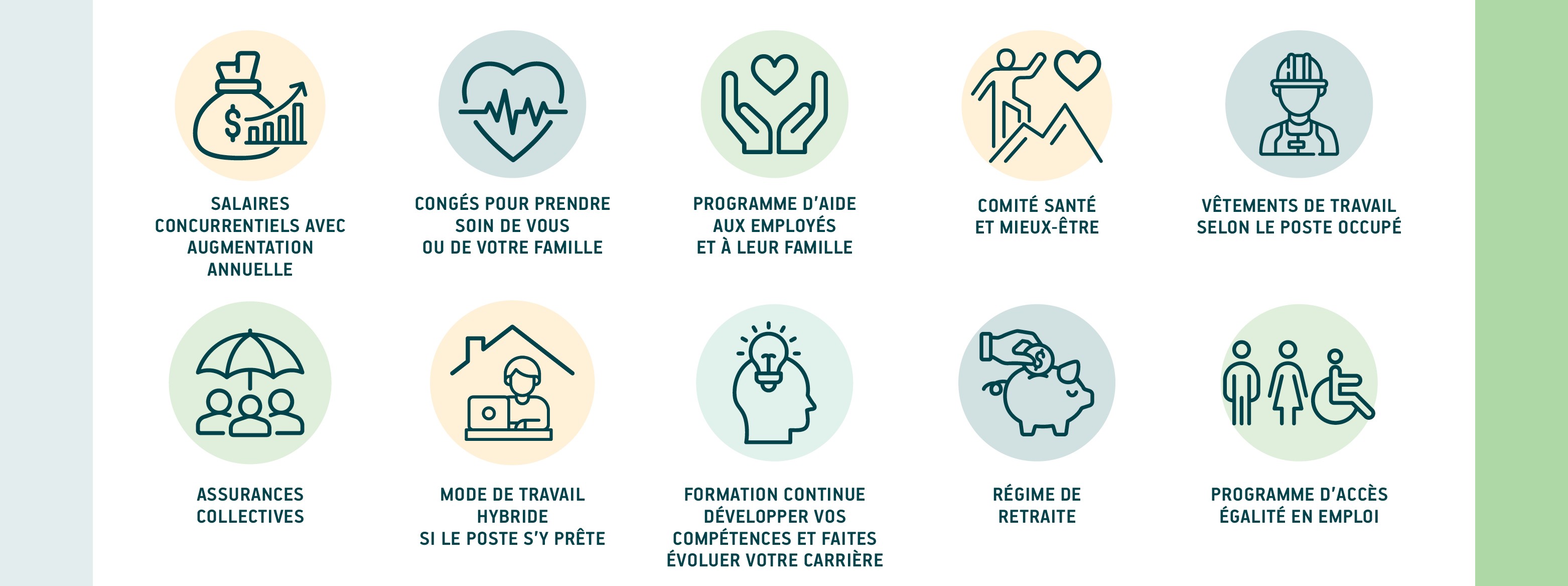 Découvrez tous les avantages que nous offrons à nos équipes et voyez comment ils peuvent améliorer votre quotidien. Notez toutefois que certains avantages peuvent varier selon le poste occupé et ne s’appliquent pas à toutes les fonctions.